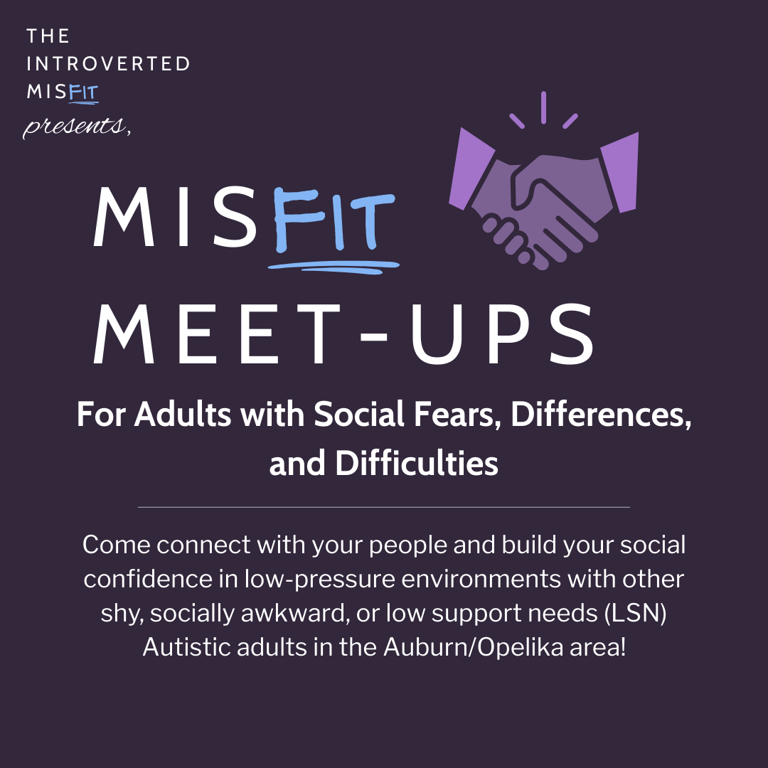 Are you a shy, socially awkward, or a low support needs Autistic adult in the Auburn/Opelika area who wants to meet people and build your social confidence? Come socialize in fun, low-pressure environments with like-minded individuals who understand you!
